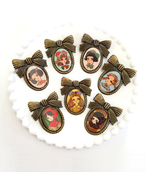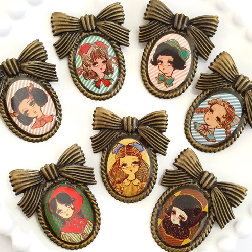 【オーダー作品/こけし・木製コンパクトミラー・木製ブローチ(2016)】